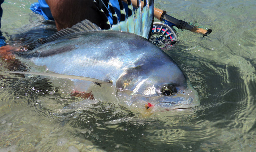 As I rolled left and stripped, both fish flared their combs in the crumbling wave and turned tight U's away from me. When they did, the line tightened in my hand and the rod became heavy as I now lifted to feel the heavy pull of a fish. The pair of fish ran hard back to the deep blue water, one of them taking me and my fly with it. Once settled and tight with loose line now safe on the reel I shouted to my wife Ali and friend Paul. Moments later the fish launched into a series of tarpon-esque jumps like none I've ever seen or even heard of rooster fish doing. It was pure thrill. It was pure joy.