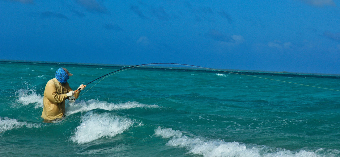 When casting to a fish of this nature, the presentation is critical. The worst presentation is to have the fish following the tail of the fly as it swims towards you, while the best scenario is to have the fly suddenly cross in front of the fish and to instantly entice the fish to attack. In an ideal situation, the fly will land just beyond and to the side of the fish so you can pull the fly across its line of vision. When done correctly this will trigger its killer instinct and initiate a sudden charge on the fly where the fish grabs the fly before your second or third strip. When you get a follow - as opposed to a charge or a missed grab - it is very important to strip as fast as you can and to never give up. I have had fish follow the fly all the way to our rod tips and then at the last instant grab both the fly and the rod tip! When a fish is hooked, it will not waste much time before blistering off for the nearest coral head or deep water.